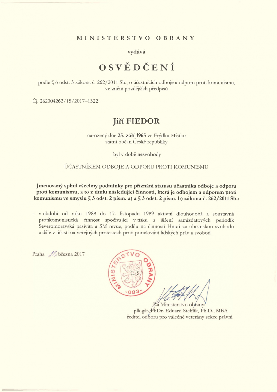 Počátkem roku 1989 připravil Jiří Fiedor spolu s několika dalšími disidenty petici za propuštění Václava Havla, který byl zatčen v lednu 1989 v Praze na Václavském náměstí během jedné z demonstrací tzv. Palachova týdne. Deník ostravských komunistů „Nová svoboda“ na tuto petici reagoval znevažujícím článkem „Kdo je Václav Havel“. Pamflet o „milionářském synkovi“ bez životní perspektivy byl označen pouze šifrou. Iniciátoři podpisové akce za osvobození budoucího prezidenta byli oproti tomu pod titulkem „Co jsou tohle za lidé“ uvedeni s plnými jmény i adresami jejich bydliště.