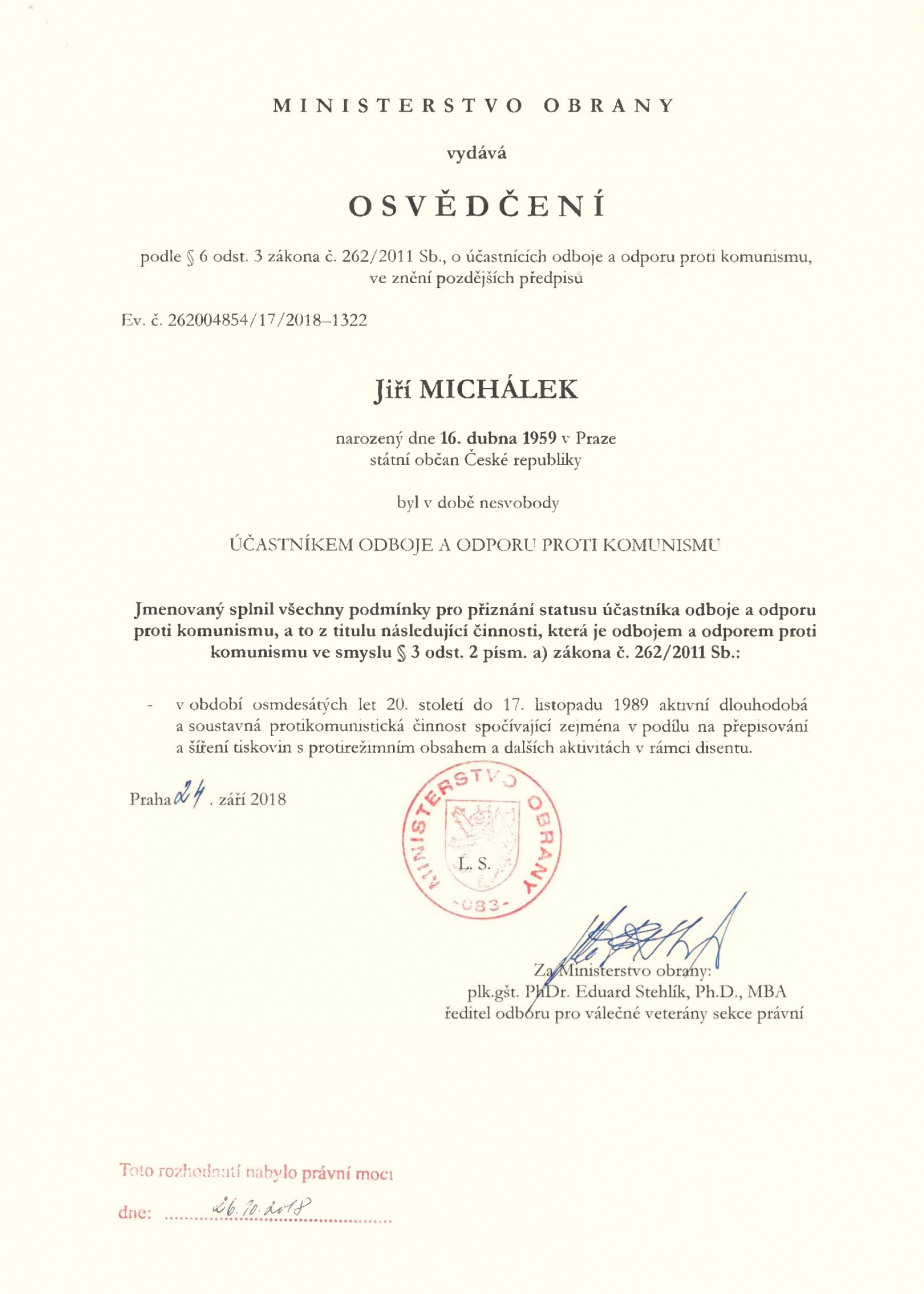 S protirežimními materiály Jiří Michálek seznamoval rovněž řadu přátel, kteří navštěvovali jeho byt na malostranském Újezdě. Později distribuoval také letáky, které se týkaly demonstrací v letech 1988 a 1989, a sám se těchto akcí účastnil. Podepsal petici Několik vět.