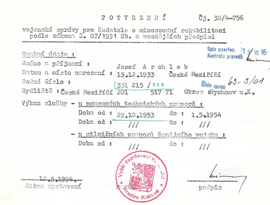 Připomínáme si životní osudy dělníka Josefa Archleba, který byl v 50. letech 20. století nucen sloužit jako „politicky nespolehlivý“ v pomocných technických praporech (PTP)⚒