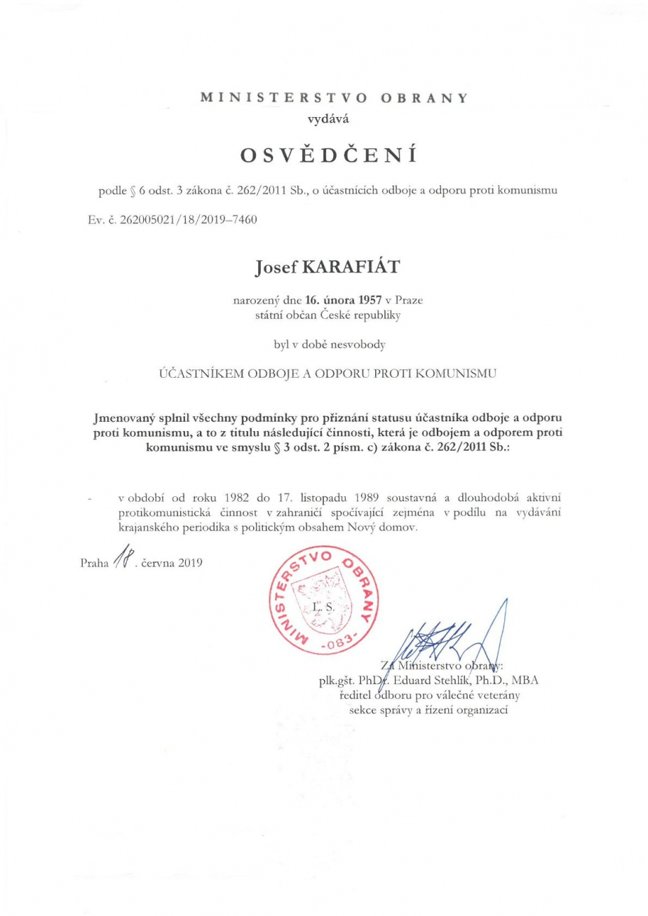 Josef Karafiát (nar. 16. 2. 1957 v Praze) odjel dne 2. 8. 1980 na turistickou cestu do Spolkové republiky Německo, Francie a Velké Británie, již využil k emigraci. V této souvislosti byl dne 11. 11. 1981 v nepřítomnosti odsouzen rozsudkem Obvodního soudu Praha 6 k nepodmíněnému trestu odnětí svobody v trvání osmnácti měsíců.