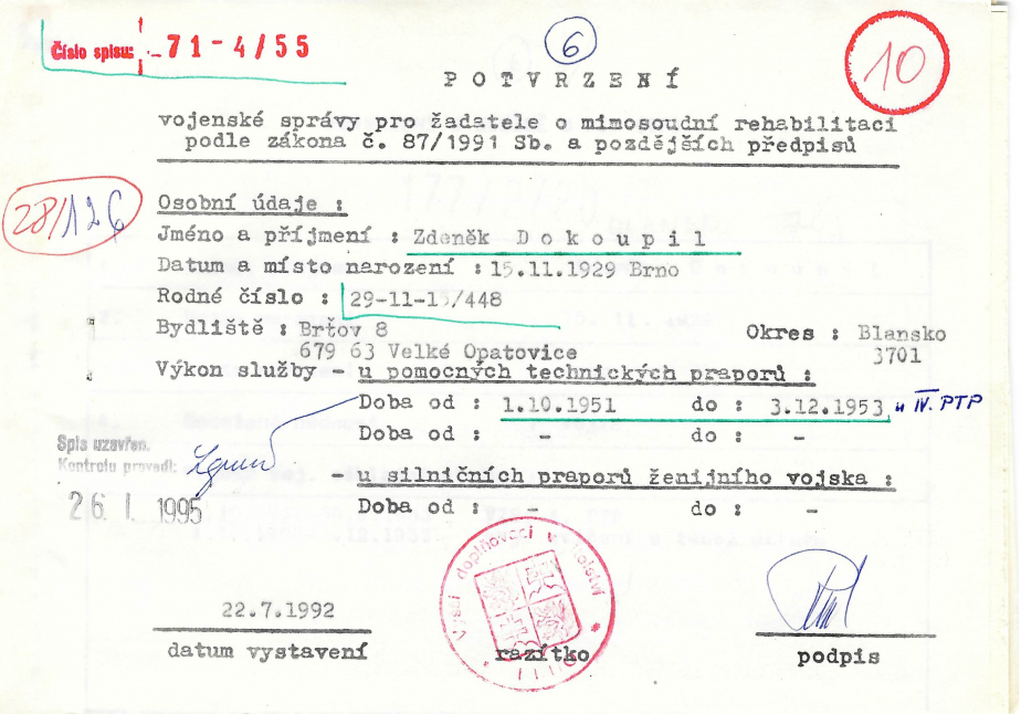 Připomínáme si životní osudy zemědělce Zdeňka Dokoupila, který byl v 50. letech 20. století nucen sloužit v pomocných technických praporech (PTP)⚒